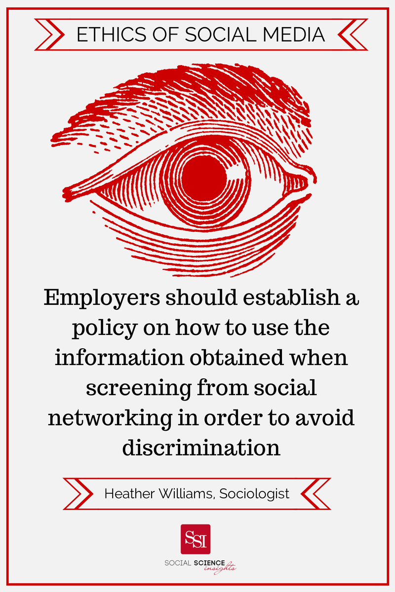 Employers are increasingly using social media to screen potential applicants. Sociologist Heather Williams has put together a thoughtful article on the ethics and problems associated.