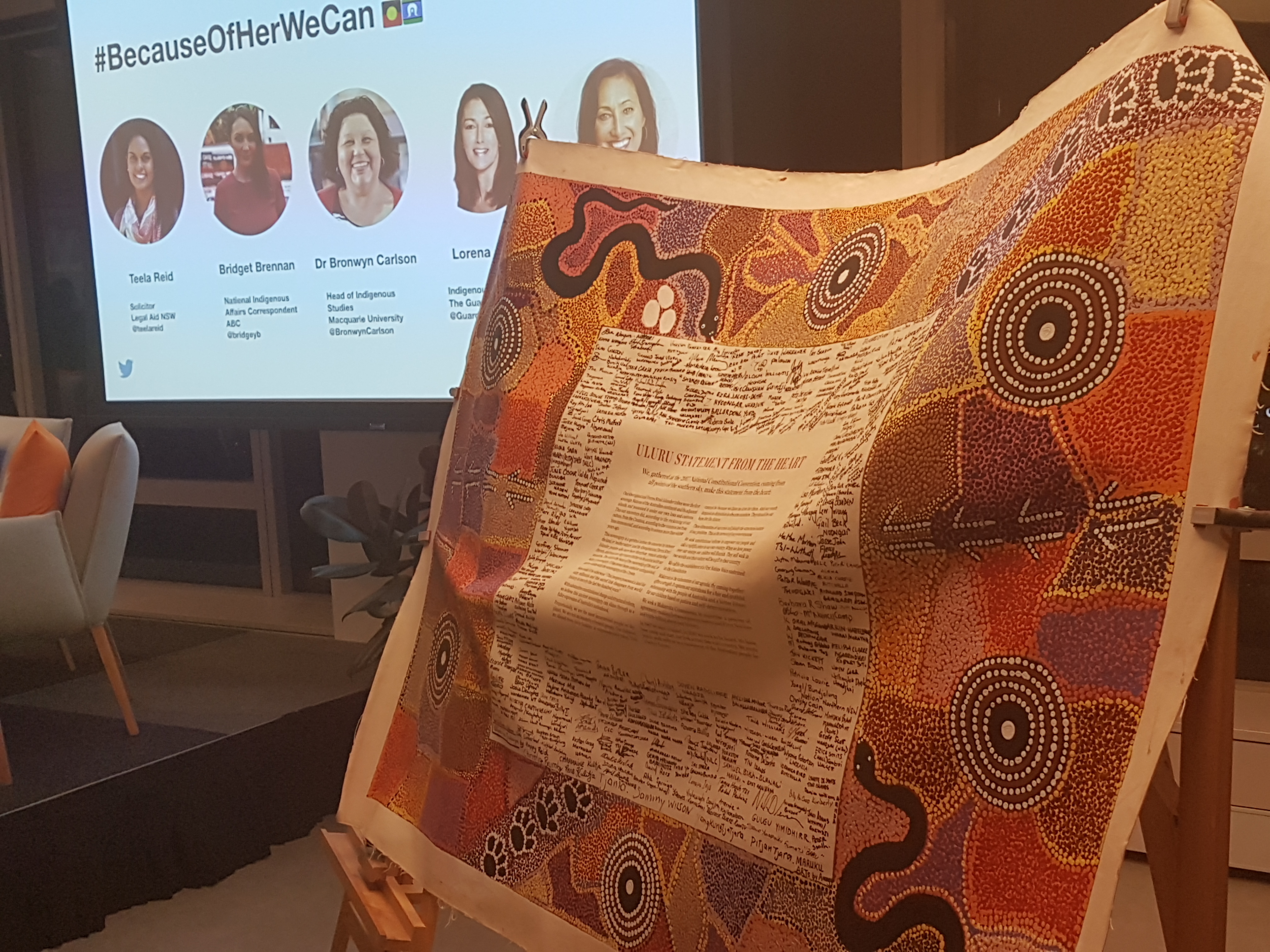 One was a panel hosted at the Twitter offices in Sydney, the land of the Gadigal people of the Eora Nation (pictured below). It focused on women’s leadership in academia, journalism and business.